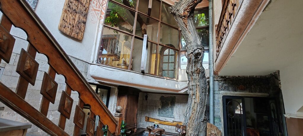 The house originally belonged to the ancestors of Aguletsi’s husband, sculptor Yuri Samvelyan, who later expanded it around a tree planted by his grandmother, who fled Van amid the massacres of Armenians in the Ottoman Empire.