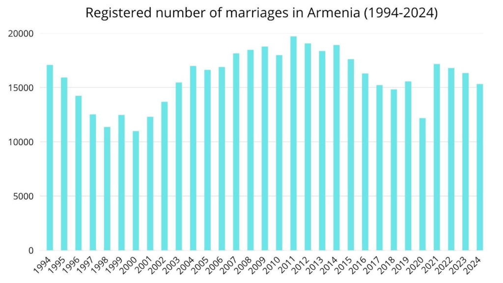 According to Armstat’s  Population Census and Demography Division, official statistics capture only   marriages and divorces registered by Civil Status Acts Registration bodies. Many unions go unrecorded, including , de facto marriages and  divorces,  as well as religious ceremonies not followed by civil registration. .