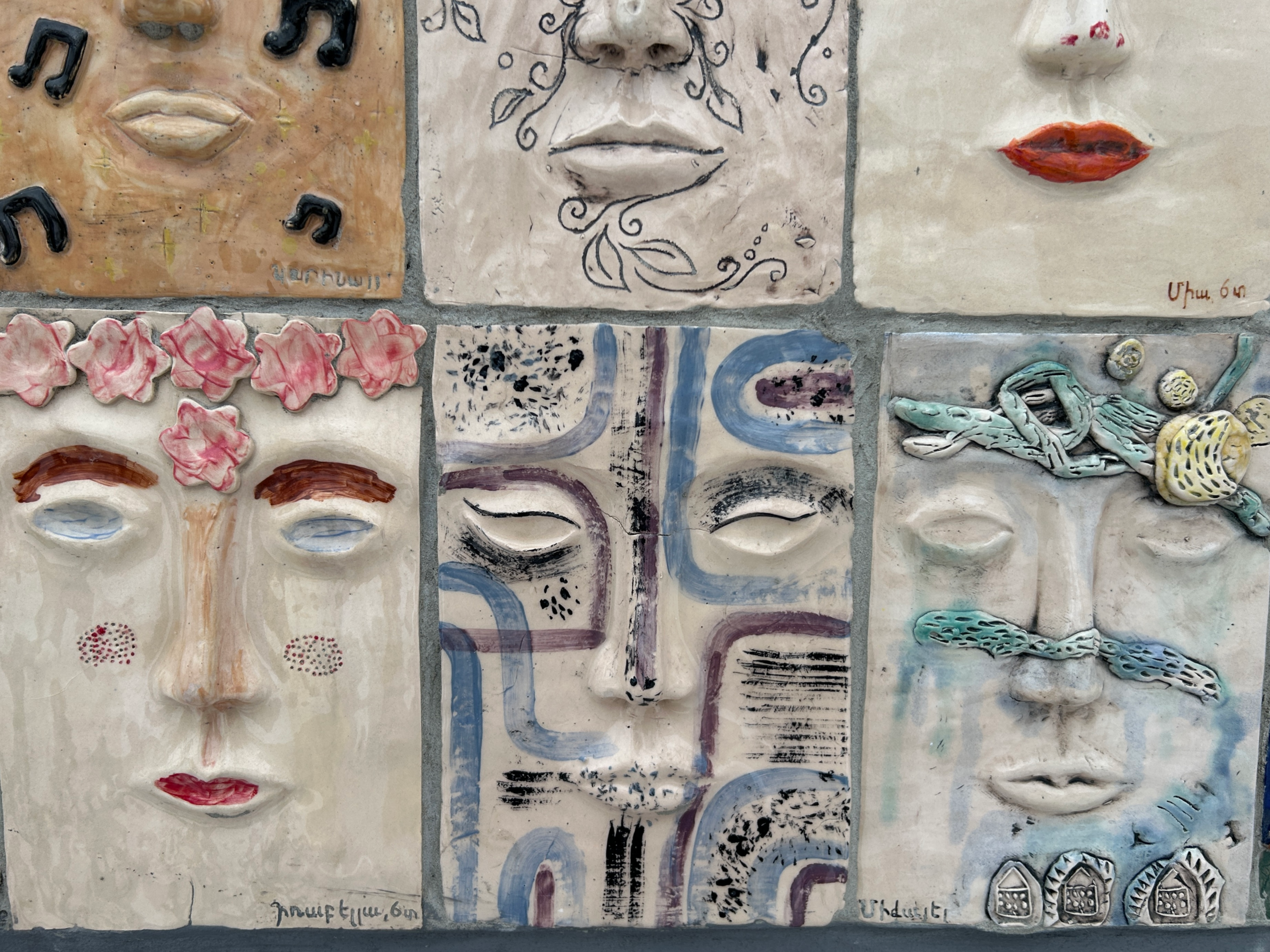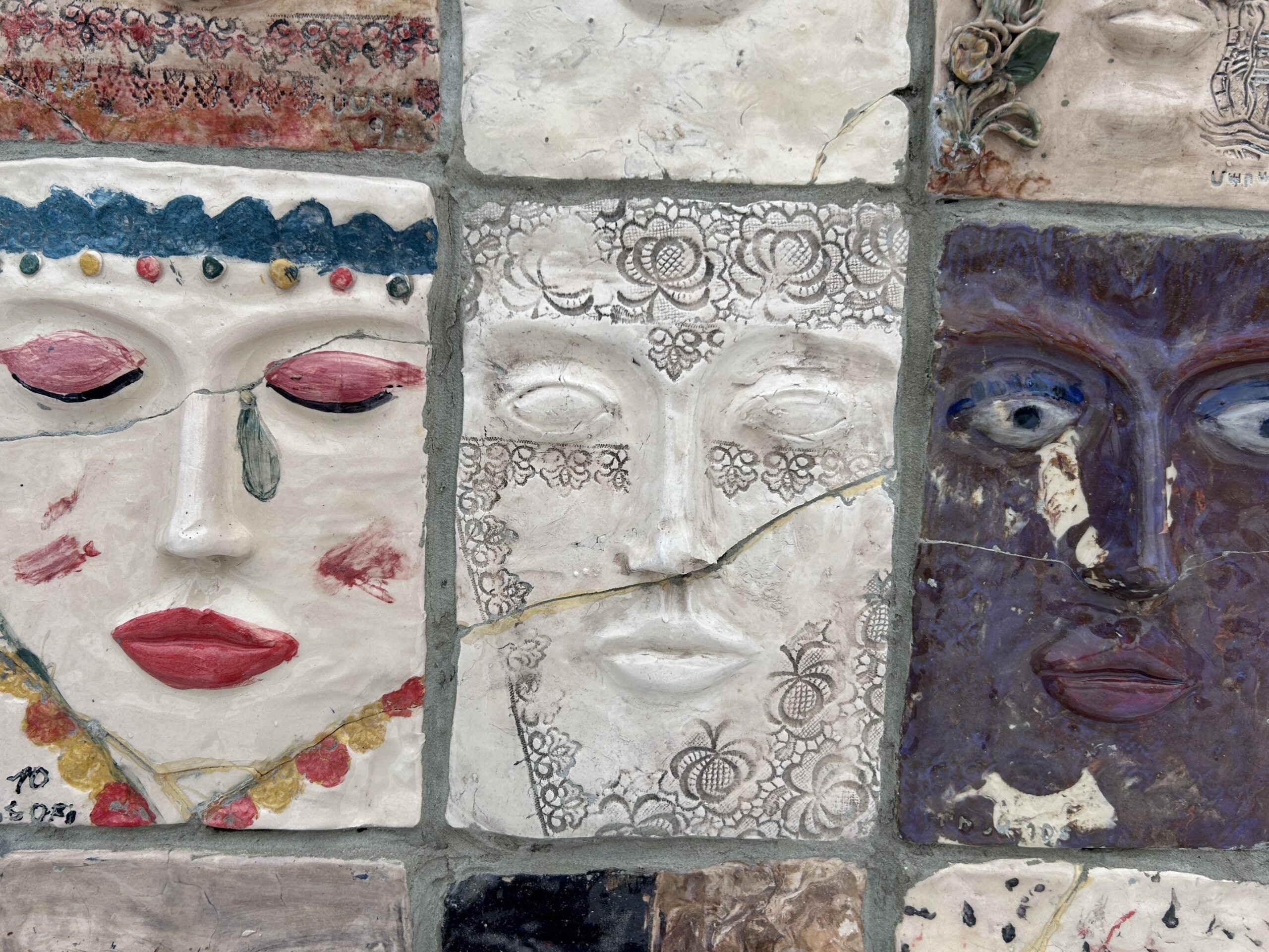 But closer inspection changes that perception. What Nana Manucharian, the founder-director, and the Terracotta Center have created is something warm and kind. The installation is a massive archway composed of more than 150 handmade ceramic mask tiles, each crafted by participants ranging from age zero to 100.